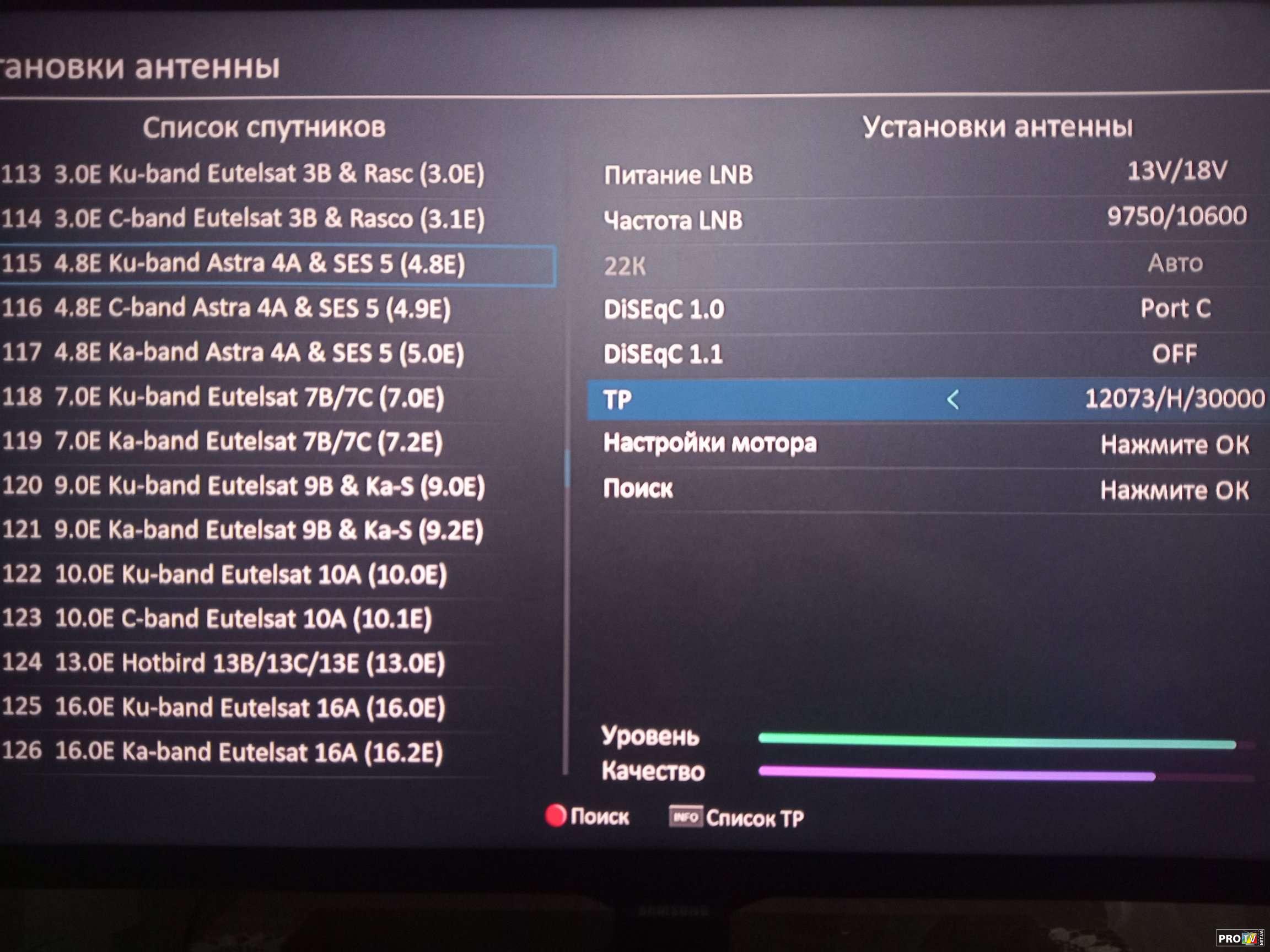 Заходим в настройки спутника -создаём или находим транспондер и нажимаем поиск.