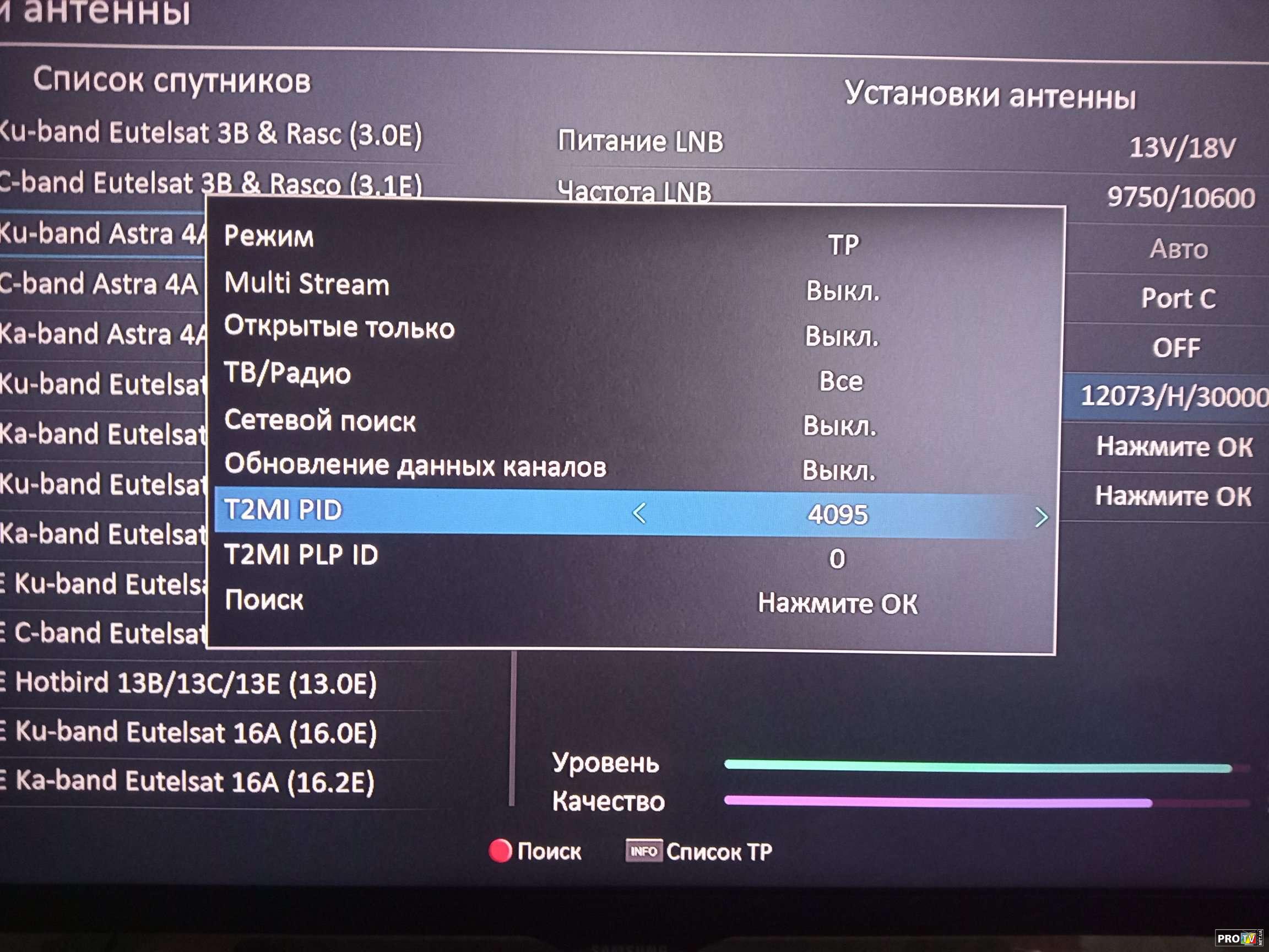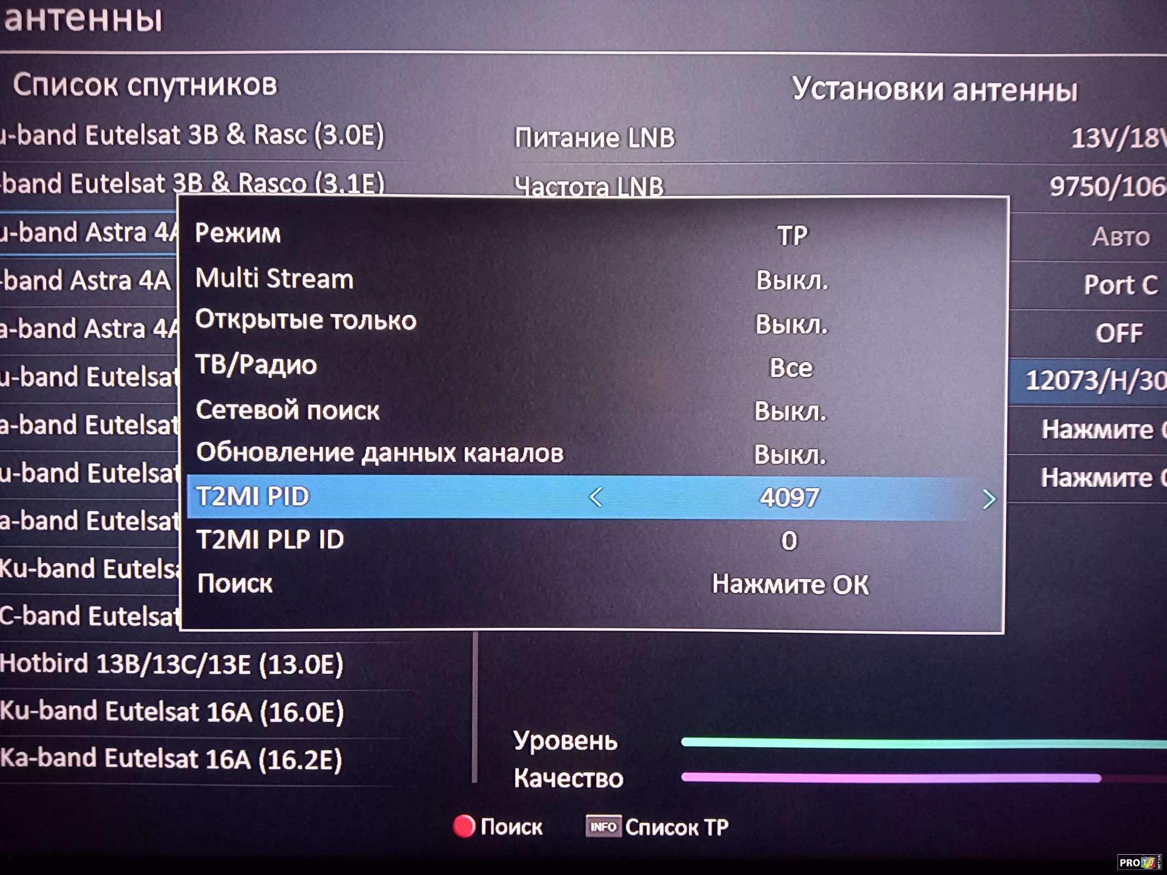 Так как ранее на ресивере Ustym 4K PRO по умолчанию была функция авто T2MI PID,но к сожалению при сканировании этого транспондера она не срабатывала так как в потоке повторю два T2MI PID.